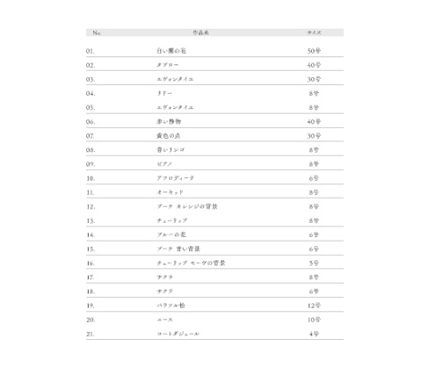 17. サクラ 8号 1980 年 個展(Hilde Gerst ギャラリー/ニューヨーク・パームビーチ/アメリカ) 2012 年 個展 (Guéthary 美術館/ゲッタリー フランス)